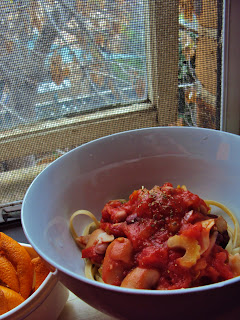With my ''bumming'' personality, I also need the perfectly quick lunch to satisfy my bolognese craving. It is absolutely the easiest sauce to make with must-have items in most pantries; diced tomatoes, four beans mix, fettucine (or any other pasta), mixed herbs. Slice another half onion, two celery sticks, with sliced chicken breast / ham... ta-da, two decent portions of fettucine bolognese and extra sauce for an emergency lunch. note: salt and pepper to taste